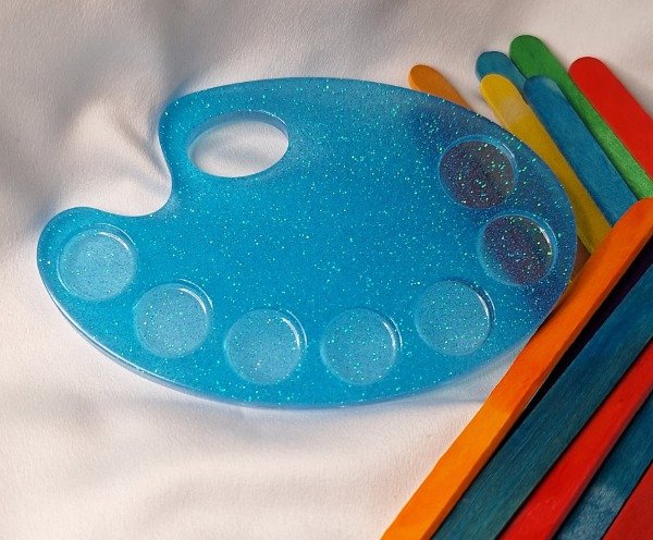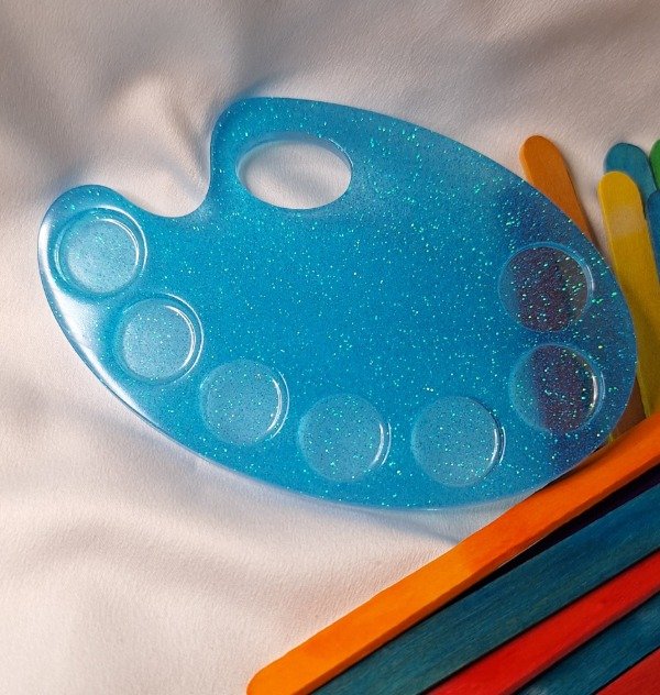 Paleta de pintor chica. Color celeste con glitter. Para que los chicos puedan pintar con temperas de manera ordenada y sin ensuciar. Se puede lavar y secar cuantas veces quieras! Viene con 1 pincel y 6 témperas. (Témperas y pincel sin elección)