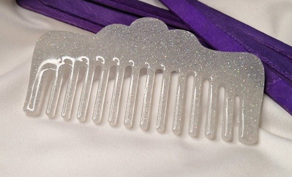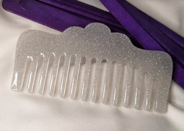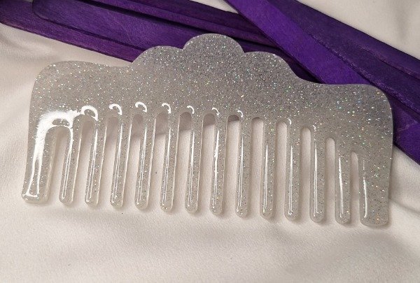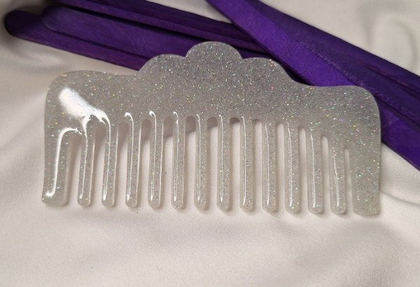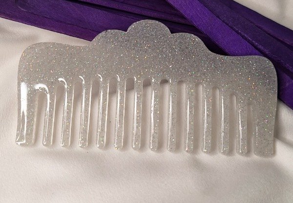 Peine chico color Gris claro con brillos. Realizado en resina